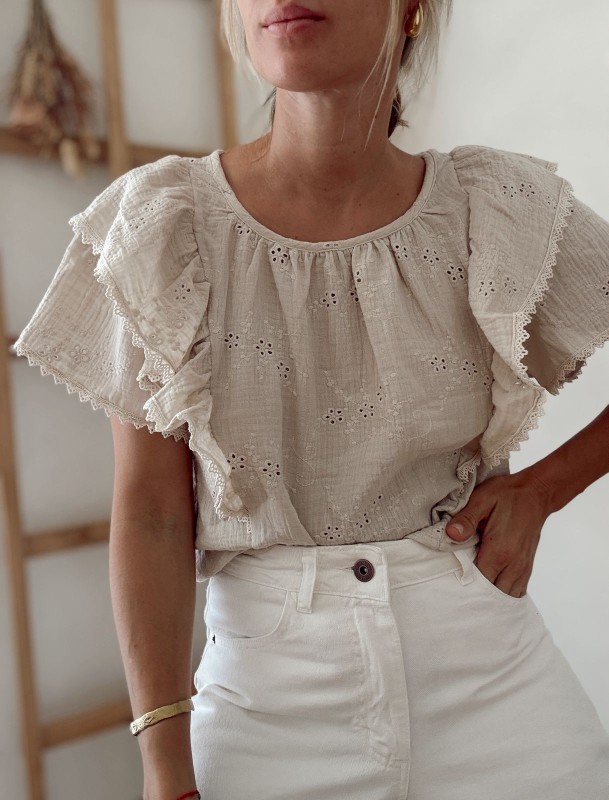 TELA: Doble gasa de algodon combinado con broderie!